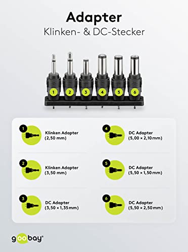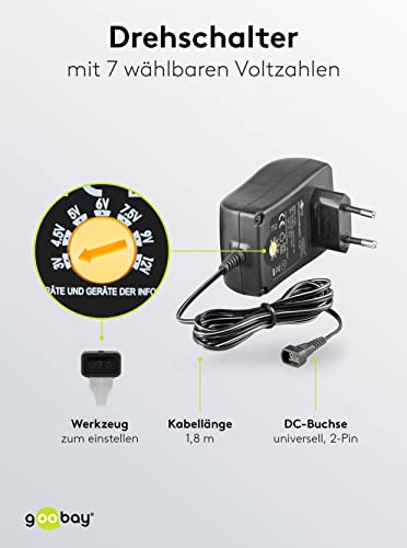 Goobay 67952 Alimentatore universale 3V - 12V max 18 W con adattatore 2x spina jack e 4x spina DC 1500 mA alimentatore a spina