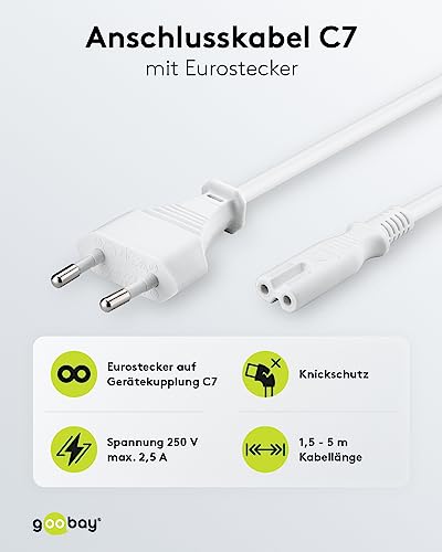 Goobay 93987 Cavo di collegamento Euro / cavo di rete / cavo di alimentazione / 2 Adrig / spina Euro (tipo C, CEE 7/16) > presa apparecchio C7 / bianco / 3m