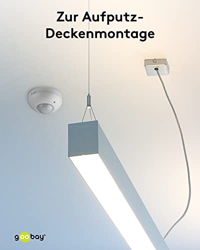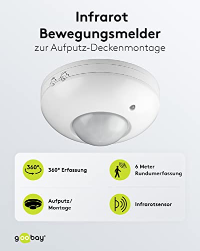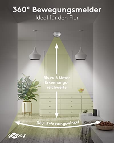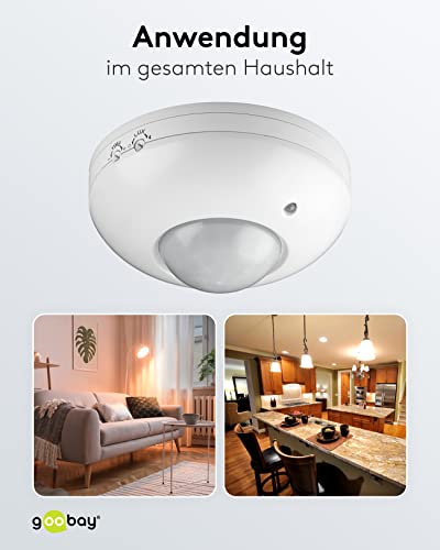 Goobay 95172 Rilevatore di movimento a soffitto a infrarossi / sensore PIR / campo di rilevamento di 360° / portata di 6 m / per uso interno (IP20) / adatto a LED / IDA (bianco)