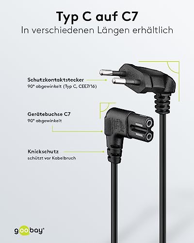 Goobay cavo alimentazione con spina europea a 2 poli doppio jack angolare