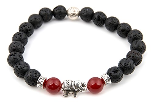 Good.Designs Bracciale Buddismo con perle in vere pietre naturali e pregiata perla con testa di Buddha, gioiello Chakra per uomo e donna, Yoga, Lavastein / Elefant, 16 - 20 cm