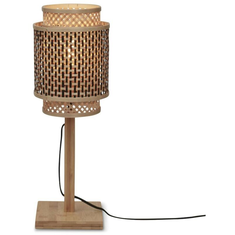 Uno stile bohémien per questa lampada Bhutan che mescola sapientemente materia naturale e design contemporaneo, in uno spirito etnico chic contemporaneo. Il paralume a doppia parete è realizzato a mano in Vietnam con canne di bambù bicolore intrecciate, naturale e nero. Ogni pezzo è una vera sfida tecnica la cui produzione richiede un'eccezionale maestria. La struttura è in bambù naturale o laccato nero. GOOD&MOJO fornisce un'illuminazione eco-responsabile realizzata interamente con materiali sostenibili e/o riciclati 1 lampadina E27 max 40W NON INCLUSA IP20 Lunghezza cavo elettrico 185 cm con interruttore ON / OFF Dimensioni: L 22 cm, Lunghezza 22 cm, H 45 cm Dimensioni paralume: Diametro 18 cm, H 25 cm Dimensioni base: L 22 cm, Lunghezza 22 cm, H 1,8 cm