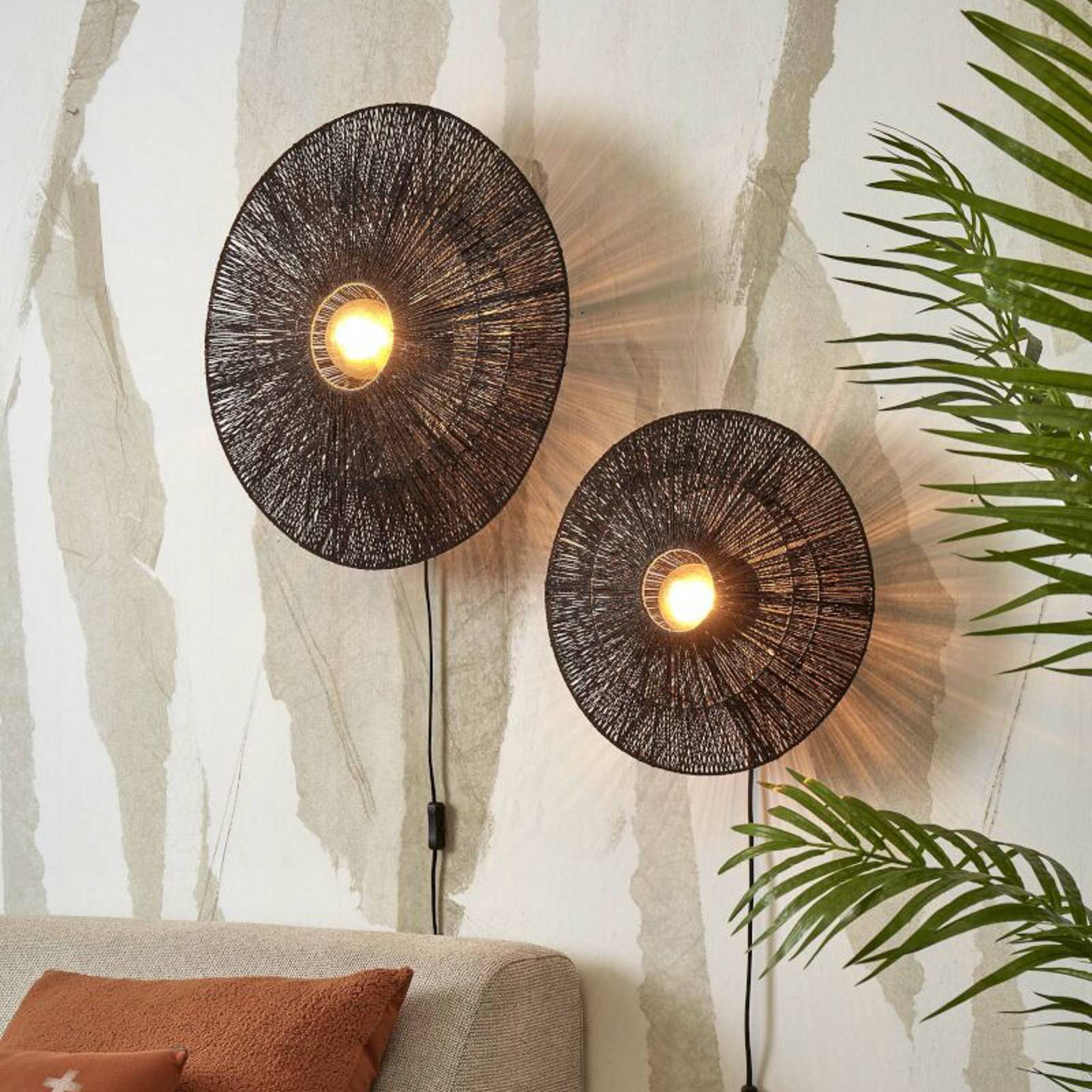 Lampada da parete rotonda Iguazu con paralume in juta e spinaCon il suo design particolare, la lampada da parete Iguazu diventa un punto di forza nella zona giorno. Il supporto a parete in ferro è coperto da un ampio paralume in juta. Iguazu è inoltre dotata di un pratico cavo a spina con il quale può essere posizionata in modo flessibile. Il portalampada è allineato sul lato anteriore, in modo che la luce risplenda direttamente nella stanza. Il paralume, realizzato a mano, crea un bellissimo effetto di luce sulla parete. L'interruttore di accensione e spegnimento è integrato direttamente sul cavo.Informazioni su Good & Mojo:- marchio sostenibile e sociale- gran parte dell'illuminazione è realizzata a mano da artigiani di piccole comunità del Vietnam- materiali sostenibili ricavati da piante abbondanti nel sud-est asiatico- per ogni lampada venduta, la Fondazione WakaWaka riceve una donazione e viene inoltre piantato un albero attrave