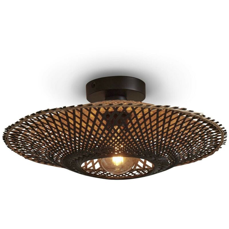 Uno stile bohémien per questa lampada Kalimantan che mescola sapientemente materia naturale e design contemporaneo, in uno spirito etnico chic molto contemporaneo. Il paralume a doppia parete è realizzato a mano in Vietnam da canne di bambù intrecciate bicolore: il lato in basso ha una finitura nera, quello in alto naturale. La lampada Kalimantan ha una grande leggerezza visiva grazie alla sua struttura traforata. Le doghe di bambù proiettano ombre delicate. GOOD&MOJO fornisce un'illuminazione eco-responsabile realizzata interamente con materiali sostenibili e/o riciclati 1 lampadina E27 max 60W NON INCLUSA IP20 Lunghezza cavo 200 cm Dimensioni: L 44 cm, H 16 / 200 cm Dimensione paralume: Diametro 44 cm, H 12 cm Dimensione rosone: Diametro 12 cm, H 2,5 cm