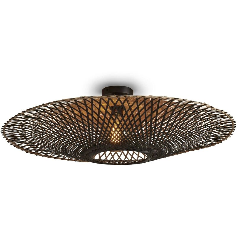 Uno stile bohémien per questa lampada Kalimantan che mescola sapientemente materia naturale e design contemporaneo, in uno spirito etnico chic molto contemporaneo. Il paralume a doppia parete è realizzato a mano in Vietnam da canne di bambù intrecciate bicolore: il lato in alto ha una finitura naturale, quello in basso nera. La lampada Kalimantan ha una grande leggerezza visiva grazie alla sua struttura traforata. Le doghe di bambù proiettano ombre delicate. GOOD&MOJO fornisce un'illuminazione eco-responsabile realizzata interamente con materiali sostenibili e/o riciclati 1 lampadina E27 max 60W NON INCLUSA IP20 Lunghezza cavo 200 cm Dimensioni: L 87 cm, H 20 / 200 cm Dimensione paralume: Diametro 87 cm, H 20 cm Dimensione rosone: Diametro 12 cm, H 2,5 cm