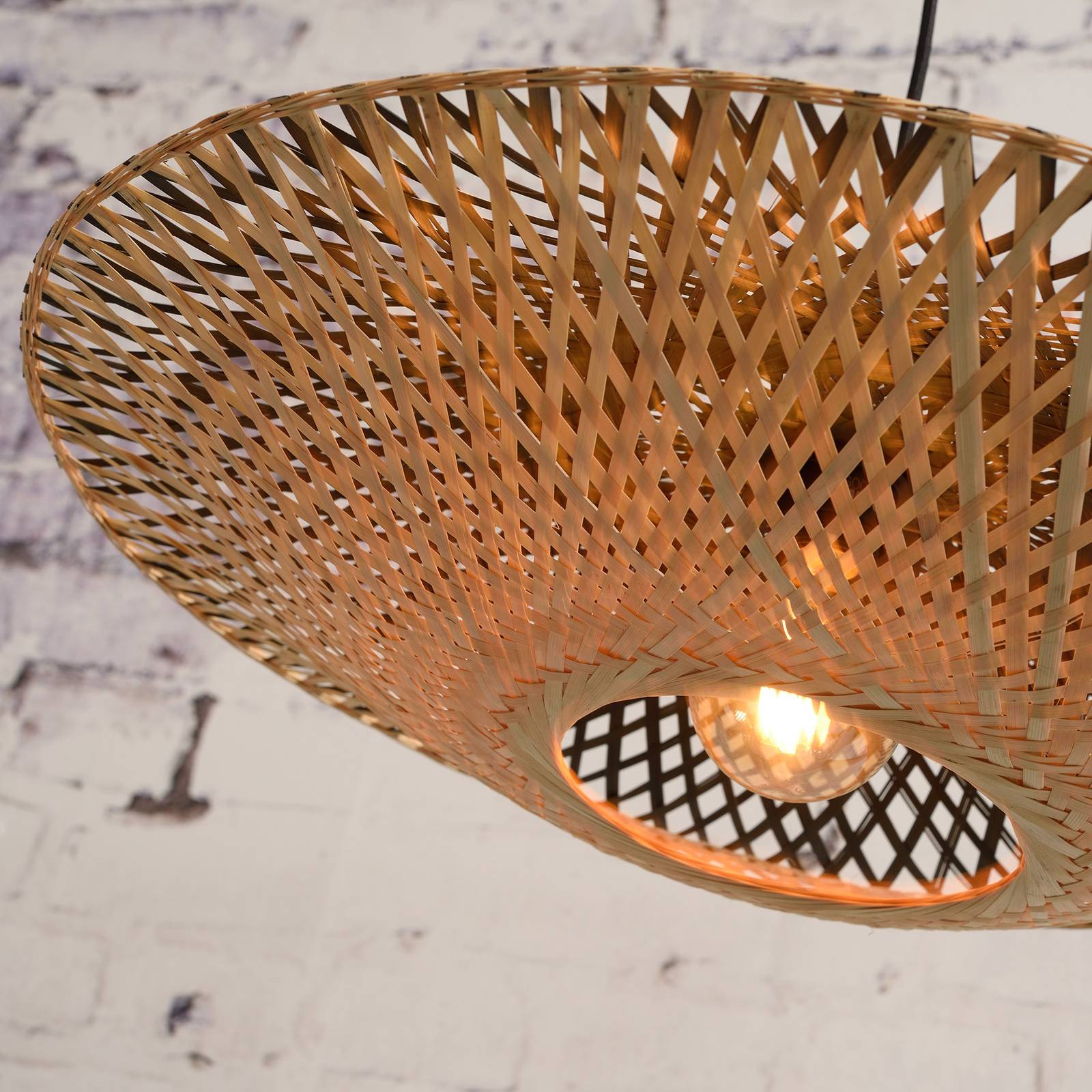 Lampada a sospensione Kalimantan con paralume intrecciato nero-naturale La lampada a sospensione Kalimantan, rotonda e formosa, crea un'atmosfera luminosa molto speciale e completa armoniosamente qualsiasi stile di vita caratterizzato dalla naturalezza. La sua grande ombra orientata orizzontalmente è fatta di bambù. Per dare risalto visivo, la parte superiore è stata dotata di bambù nero e la parte inferiore è stata mantenuta in colore naturale. A causa del modello di tessitura, si creano delle fessure attraverso le quali la luce può sfuggire tutto intorno e crea un'atmosfera accogliente. Nella parte inferiore, è incorporata un'apertura rotonda attraverso la quale la luce viene emessa direttamente e l'illuminante è visibile. Per migliorare l'aspetto decorativo di Kalimantan, si raccomanda di scegliere una lampada a filamento di colore bianco caldo. Le tonalità di questa collezione di lampade sono fatte a mano da persone del Vietnam. In questo modo, possono conservare e utilizzare le loro tecniche tradizionali e allo stesso tempo, si assicurano il loro sostentamento attraverso il loro lavoro. Per il marchio Good & Mojo è importante non solo portare la luce con le loro luci sostenibili, ma anche fare del bene. Insieme alla WakaWakaFoundation, si rende possibile l'occupazione di tali comunità e allo stesso tempo, attraverso le donazioni, si forniscono prodotti solari a persone che altrimenti non hanno accesso all'elettricità.