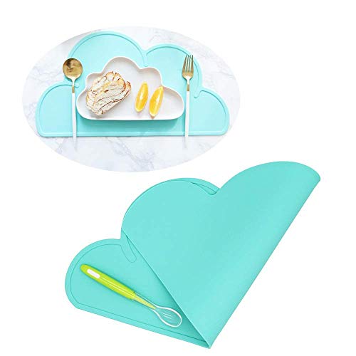 Good partner - Tovaglietta per bambini, in silicone, motivo nuvole, impermeabile, verde, 47,5 x 27 x 0,3 cm