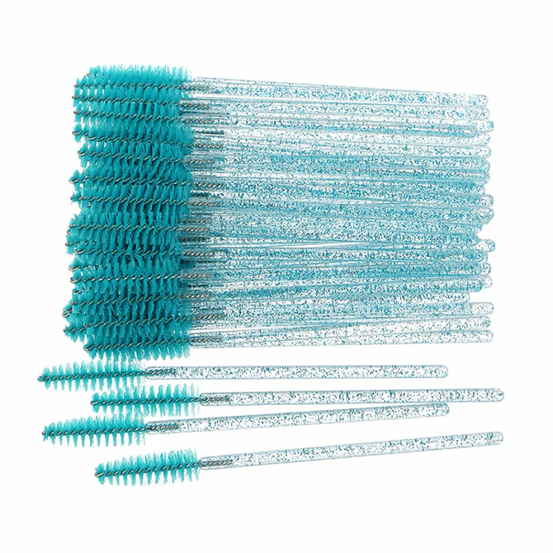 Good Quality Disposable 50 Pcs/Pack Crystal Eyelash Makeup Brush Diamond Handle Mascara Wands Eyelash Extension Tool