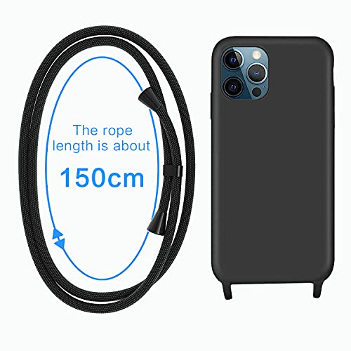 GoodcAcy Cover con Collana per iPhone 13,Custodia Silicone Liquido con Cordino per iPhone 13,Custodia con Regolabile Collana Case con Laccio Tracolla per iPhone 13 Cover,Nero
