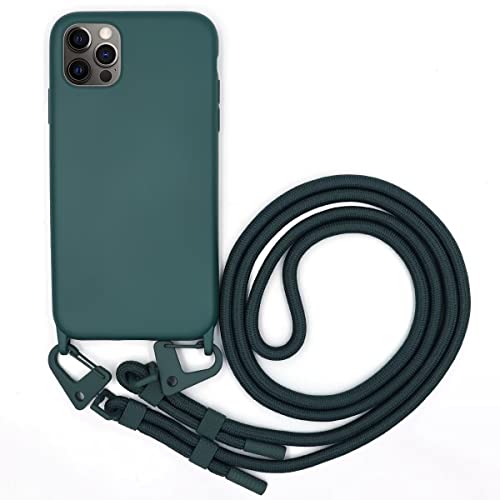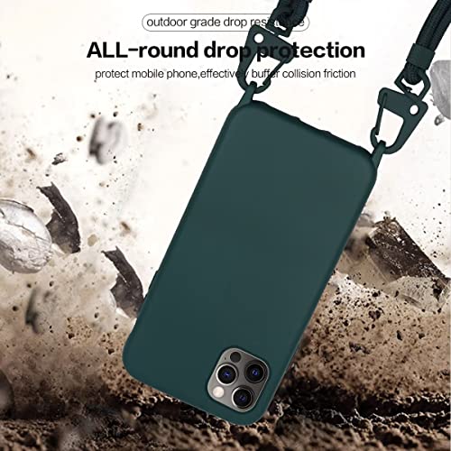 GoodcAcy Custodia Compatibile con iPhone 14, Custodia da Collo per Smartphone,Cover con Cordoncino da Indossare Cordino Laccio Morbido Silicone Necklace Bumper Case - Verde Scuro