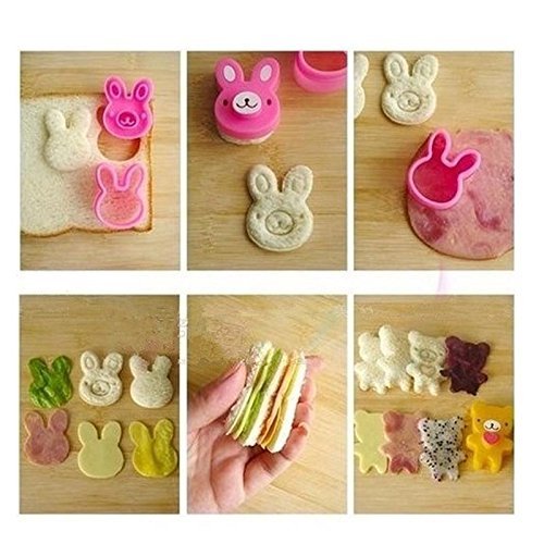 GOODCHANCEUK - Set di 3 stampi per sandwich a forma di orso e coniglio per pane, biscotti in rilievo