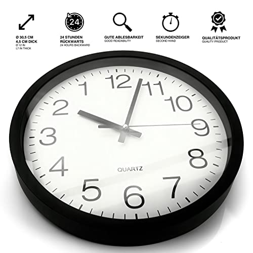 - Orologio da parete analogico in bianco e nero, elegante e senza tempo.