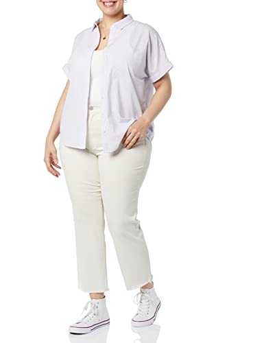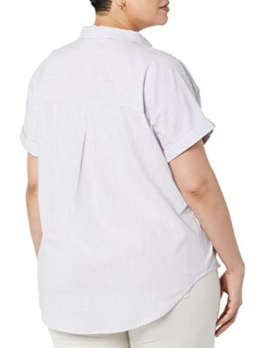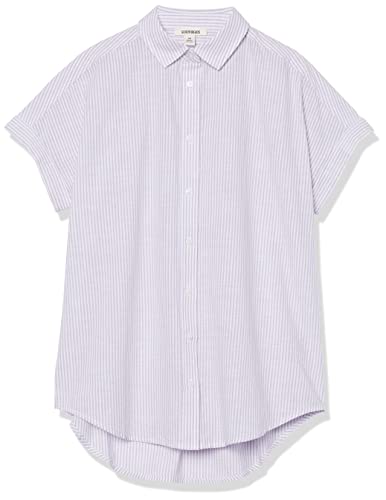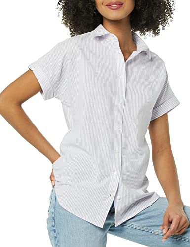 Goodthreads Camicia a Maniche Corte in Cotone Slavata Donna, Lilla/Avorio, Righe Verticali, XS