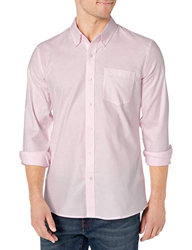 Goodthreads Camicia Oxford Elasticizzata a Maniche Lunghe con vestibilità Standard di Facile Manutenzione Uomo, Rosa, Righe, M