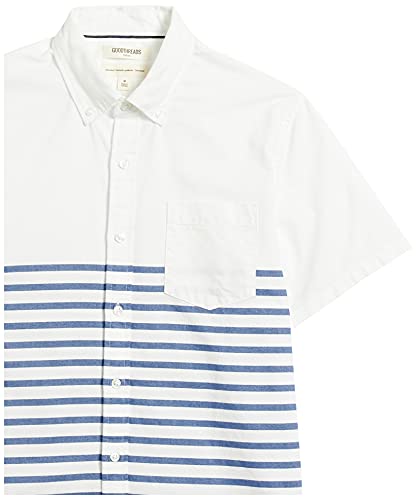 Goodthreads Camicia in Tessuto Oxford a Maniche Corte vestibilità Standard con Taschino Uomo, Bianco/Blu, Righe, L