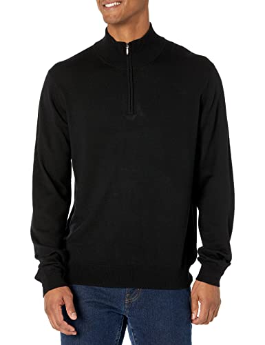 Goodthreads Maglione Leggero in Lana Merino con Cerniera Corta (Disponibile nella Taglia Tall) Uomo, Nero, XS