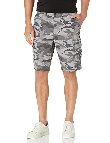 Goodthreads Pantaloncini Cargo in Tela Elasticizzati Comodi 28 cm Slim Uomo, Grigio, Mimetica, 29W