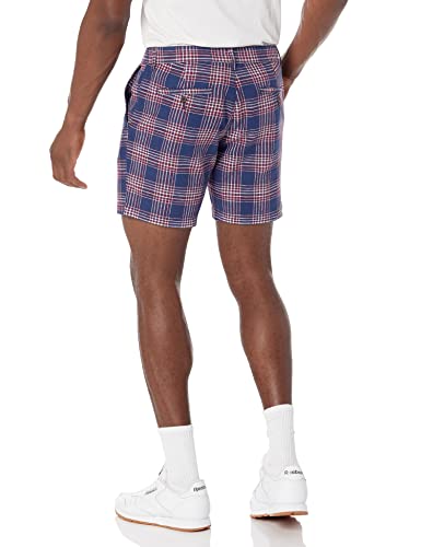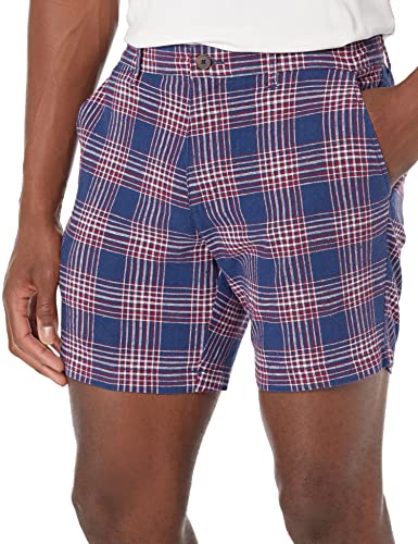 Goodthreads Pantaloncini comodi elasticizzati in lino e cotone con cuciture interne interno gamba 18 cm Uomo, Blu Marino/Rosso, A Quadretti, 38W