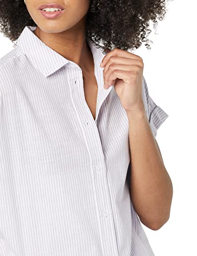 Goodthreads Tunica a Maniche Corte in Cotone Slavata Donna, Lilla/Avorio, Righe Verticali, L