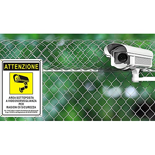 AVVISO ALTAMENTE VISIBILE - La vivace segnaletica in alluminio stampato giallo e nero è un modo accattivante per ricordare alle persone: AREA SOTTOPOSTA A VIDEOSORVEGLIANZA PER RAGIONI DI SICUREZZA. I nostri pannelli in alluminio hanno una struttura in metallo di alta qualità, colori brillanti e caratteristiche riflettenti, che sono molto accattivanti.