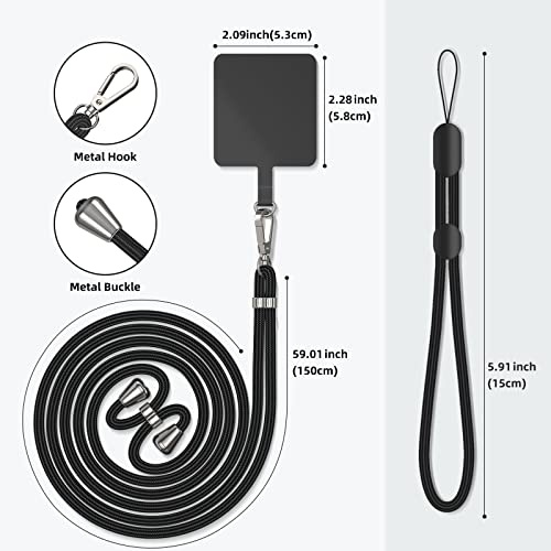 GOODVISH 3 in 1 Cordino per Cellulare, Regolabile Universale Catenella Laccio Tracolla per Collo, Cordino da Polso, Cordino per Telefono Multicolore Uomini e Donne, Nero
