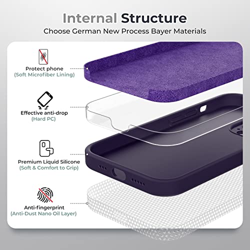 GOODVISH [3 in 1 Cover in Silicone per iPhone 14 Pro 6,1'' (2022), con 2 Pezzi di Pellicola Protettiva, Custodia per Cellulare Ultra Sottile Antiurto Resistente [Protezione Fotocamera], Viola Scuro