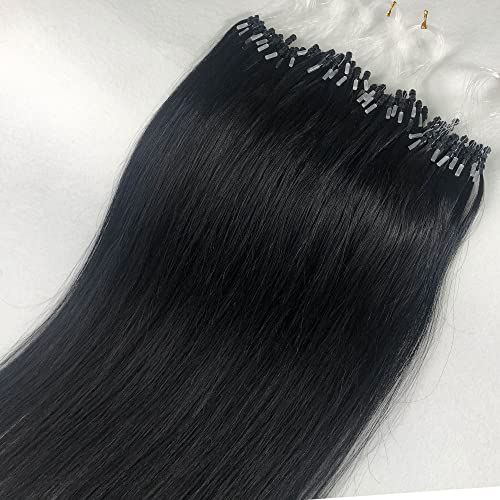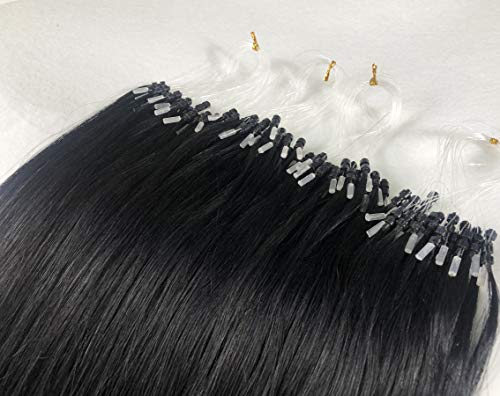 GOOFIT Extension per capelli con micro loop, veri capelli Remy, con doppio anello, 1 g/s, confezione da 50 (45,7 cm, #01 nero corposo)