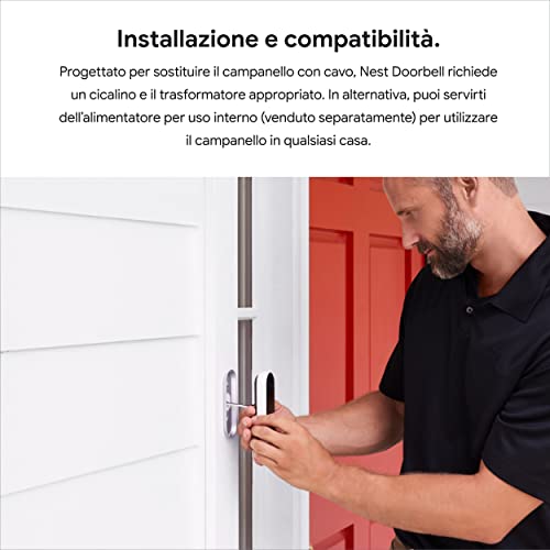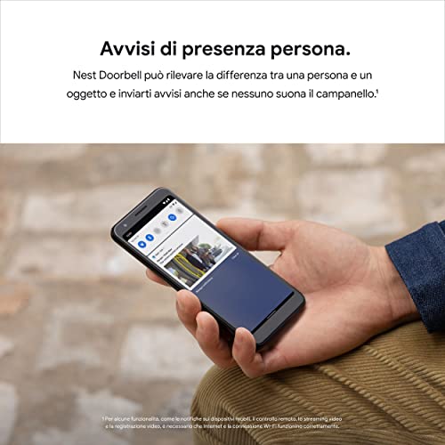 Con Nest Doorbell puoi sapere sempre chi c'è alla porta, ricevere un avviso quando si avvicina qualcuno alla tua abitazione e parlare con i visitatori alla porta, ovunque ti trovi;