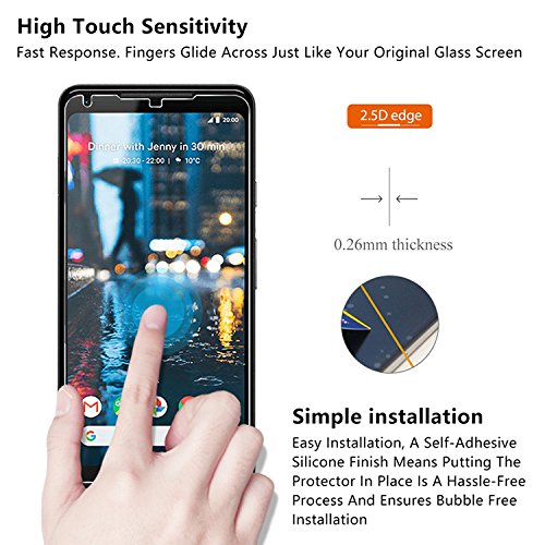 [migliore protezione per Google Pixel 2 protezione completa, senza bolle d' aria, durezza 9H, HD Clear, anti-fingerprint, rainbow-effect proof, Shatter Proof, funzioni tattili, spessore 0.4 mm, autopulente.