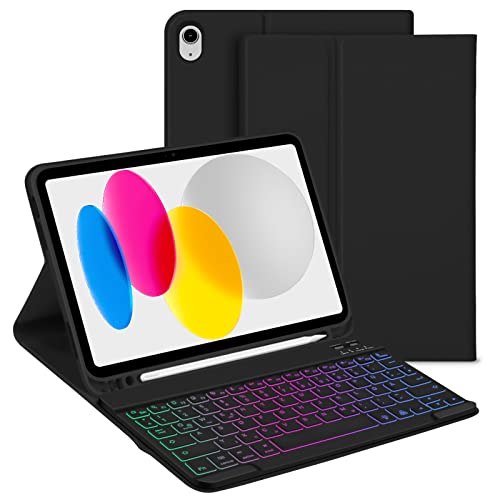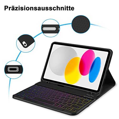 Tastiera colorata con retroilluminazione: la tastiera per iPad 10 dispone di una combinazione di 7 diverse retroilluminazione, che puoi impostare sul tuo colore preferito. La luce morbida garantisce illuminazione e consente una digitazione fluida anche in ambienti bui.