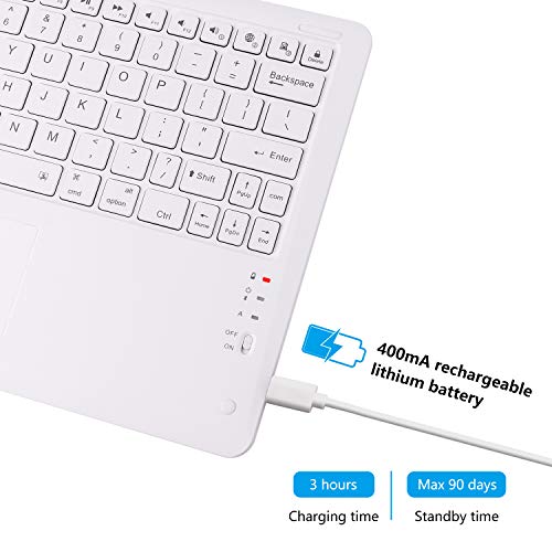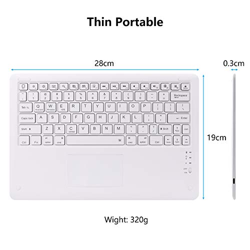 GOOJODOQ Touchpad Tastiera Bluetooth, Ultra-Sottile Portatile Bluetooth 3.0 Tastiera Wireless Applicata a iOS (13 o Superiori) /Android Tablet Smartphone(White)-12 Pollici