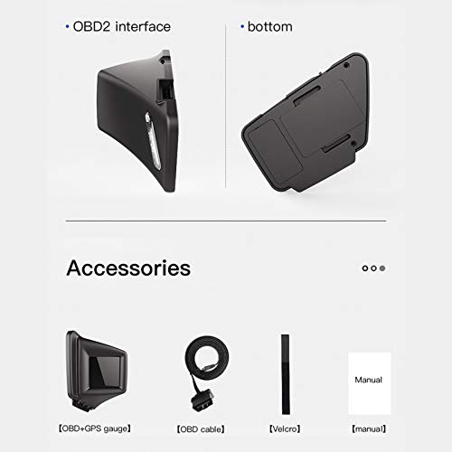 Indicatore intelligente OBD + GPS con supporto regolabile. 2 metodi di installazione: posizionare sul cruscotto o sul montante. Design elegante: lente dello schermo ad alta definizione, non influenzata dalla luce esterna.