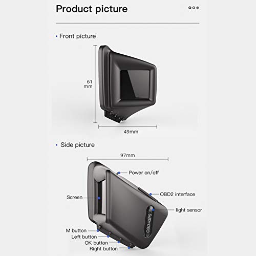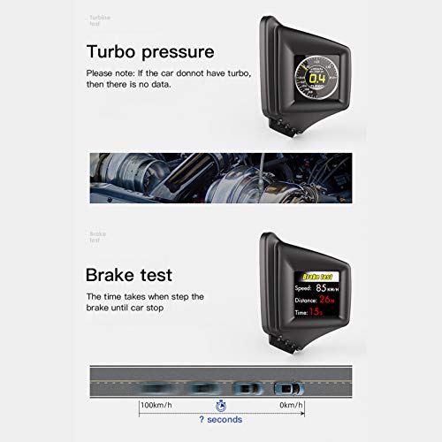 Display modalità OBD: velocità del veicolo, velocità di rotazione, temperatura dell'acqua, tensione, distanza di guida, tempo di guida, consumo di carburante, orologio, temperatura dell'olio, pressione della turbina, test di accelerazione di 100 km, test freni, codice di guasto.
