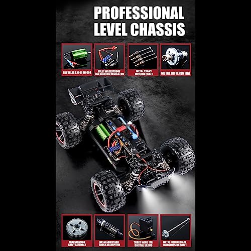 Goolsky Auto telecomandata, 1:14 RC Car 4WD Crawler Auto RC 75 km/h Giocattolo fuoristrada ad alta velocità con motore brushless Regali per bambini