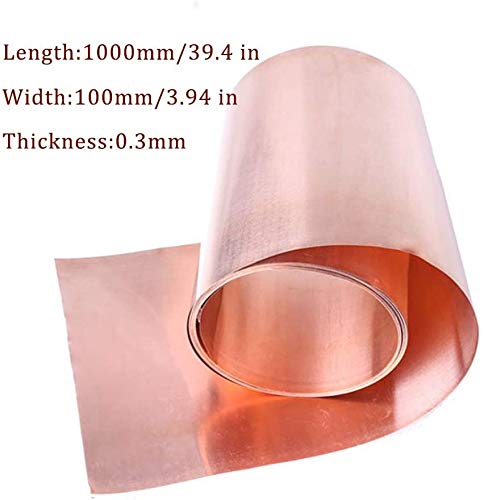 GOONSDS Fogli di Rame Puro - Cu Striscia di lamiera Sottile Piastra per Conductive Rotolo Craft Materiale, Lunghezza 1000 Millimetri, 100 Millimetri Larghezza,Thickness 0.3mm