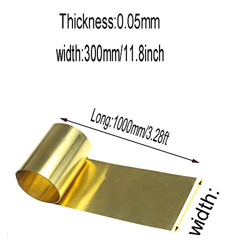 GOONSDS H62 Ottone Metallo Sottile Foglio Pellicola Piastra Roll Materials Lavorazione dei Metalli 300 Millimetri / 11.8Inchx1000mm / 39.9Inch,Thickness:0.05mm