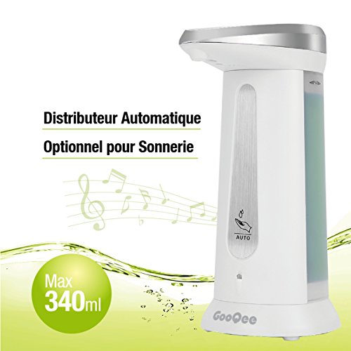 GooQee Automatico touchless Dispenser di Sapone disinfettante per Cucina e Bagno, Impronte digitali Resistente in Acciaio Inox, 340ml/12oz White, 13 x 8 x 19 cm