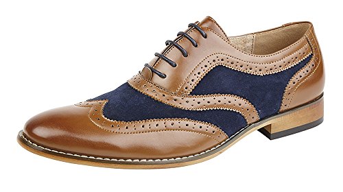 Goor - Scarpe modello brogue da ragazzo, di colore marrone chiaro e blu scuro, foderate in pelle, con lacci, eleganti, misure: 30-38, Marrone (Marrone scuro.), 38/38.5 EU