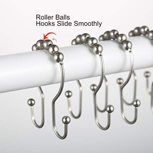 Doppia doccia: i doppi ganci per tenda da doccia sono realizzati con squisita lavorazione. L'ostacolo su entrambi i lati fissa le sfere a rullo per mantenere l'equilibrio, impedendo che la tenda da doccia cada via, è abbastanza forte da contenere sia tende pesanti che rivestimenti.