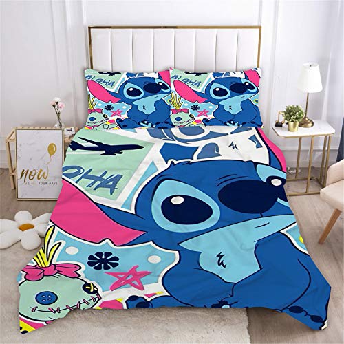 Goplnma, Lilo & Stitch, set di biancheria da letto per bambini, motivo cartone animato 3D, in microfibra, in policotone, multicolore (200 x 200 cm, 1)