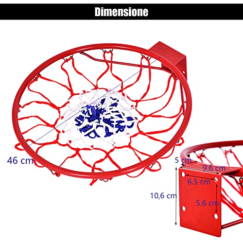 GOPLUS Anello Canestro da Basket, in Ferro e PE, Rete di Pallacanestro a Muro, per Bambini e Adulti, Facile da Montare, Diametro di 46cm
