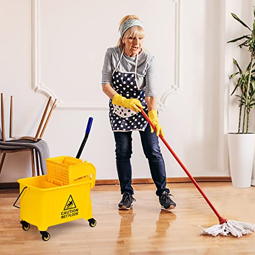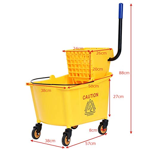 GOPLUS Carrello 32L per Pulizia, Secchio Lavapavimenti, con Secchio Doppio, Strizzatore, Ruote Flessibili, Maniglia, Giallo, 57x38x88 cm