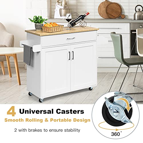 GOPLUS 2 in 1 Carrello/Credenza da Cucina in Legno con 1 Cassetto, Ruote Dimensione Regolabile di Conservazione, Portavivande di Servizio per Cucina Ristorante (Bianco)