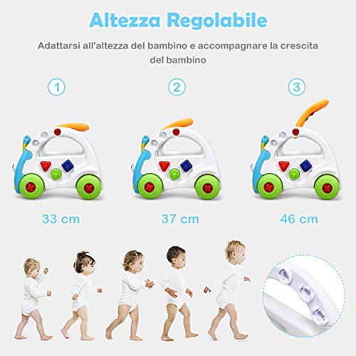 Sicuro ed affidabile: Ruote con controllo della decelerazione per una maggiore sicurezza, ruote antiscivolo, nessun problema di sicurezza mentre il bambino sta imparando a camminare, le ruote grandi e sicure aiutano i bambini a stabilizzarsi, le ruote silenziose non graffiano il pavimento per evitare il ribaltamento.