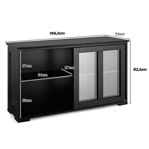 GOPLUS Mobiletto da Cucina,Armadietto per Cucina in Legno con con 2 Ante Scorrevoli,Mobile TV Moderno Ripiano Regolabile,Bianco/Nero 106,7x62,5x33 cm (Nero)