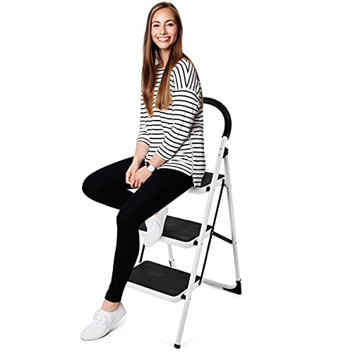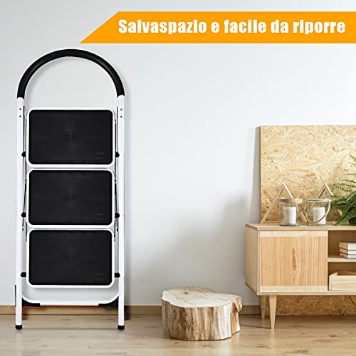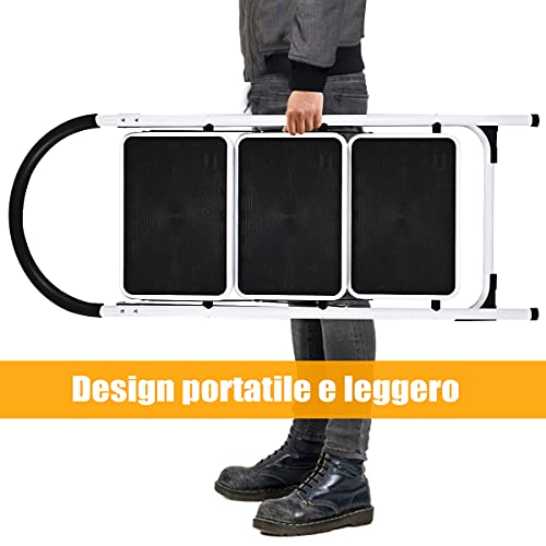 GOPLUS Scala Pieghevole, Scaletta con 2/3/4 Gradini Antiscivolo, Capacità di Carico di 150 kg, Sgabello di Ferro con Pianta Larga Multifunzionale (3 gradini)