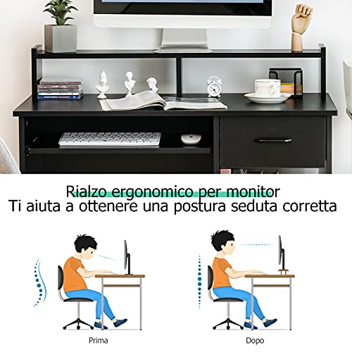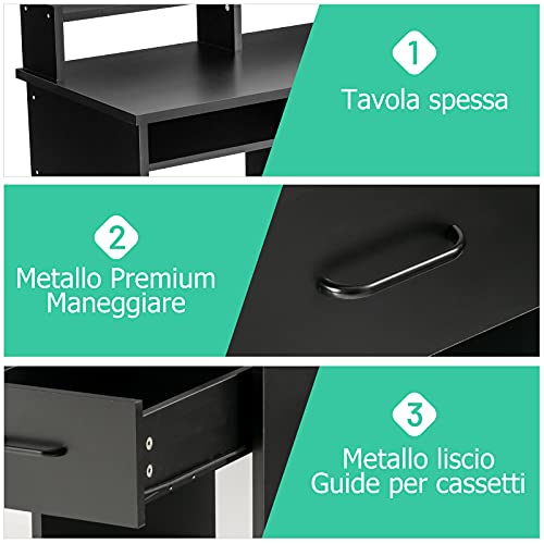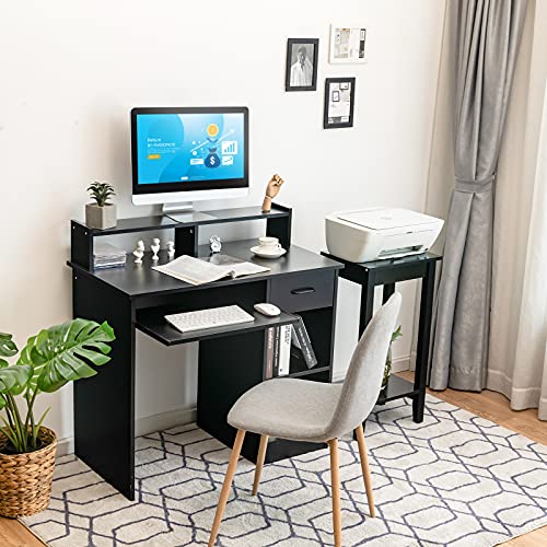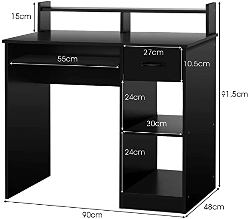 GOPLUS Scrivania Porta Computer, Scrivania Moderna per Casa e Ufficio, Tavolo Porta PC con Spazio di Archiviazione, di Legno, 90x48x91 cm (Nero)