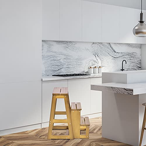 In legno: Questa scaletta è realizzata in legno di pino. Il legno di pino è molto resistente, non si danneggia facilmente, ha una lunga durata ed è inodore, perciò puoi usarlo in sicurezza.