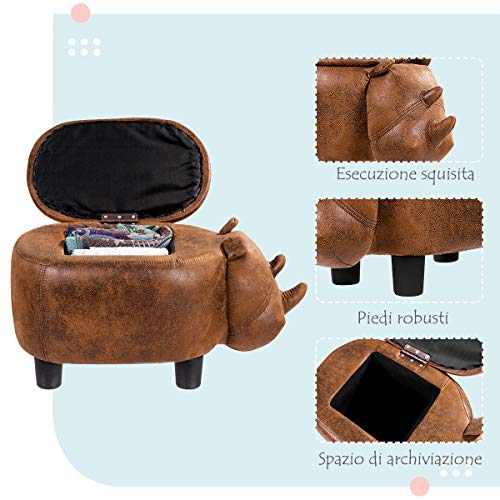 Goplus Sgabello di Stoccaggio Animale, Sgabello per Calzature Sgabello di Stoccaggio per Bambini (Rinoceronte)