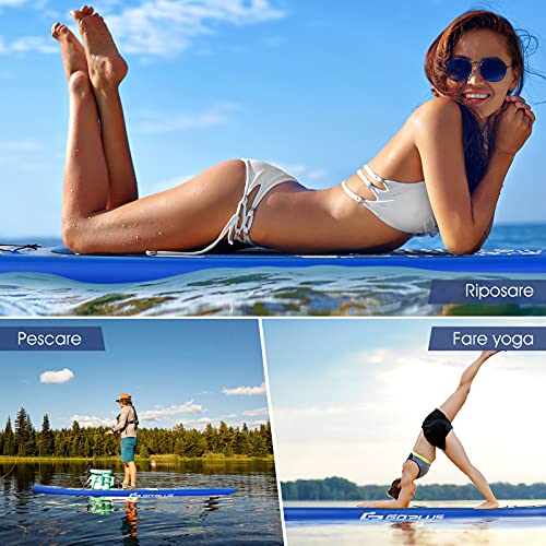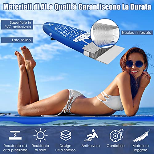 GOPLUS SUP Tavola da Surf Gonfiabile, Set Paddle Board per Adulti, Portata di 120/130/170kg, Remo Regolabile 160-210cm, 335/305/297x76x15 cm (Blu A, S)